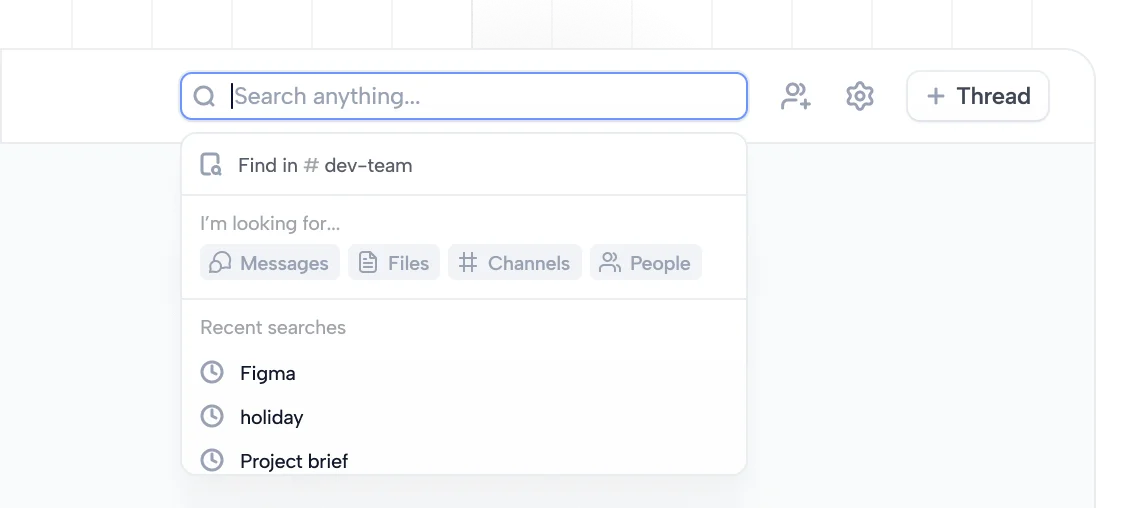 Never lose track of important conversations. Our advanced search functionality lets you pinpoint messages, files, and even specific users.
